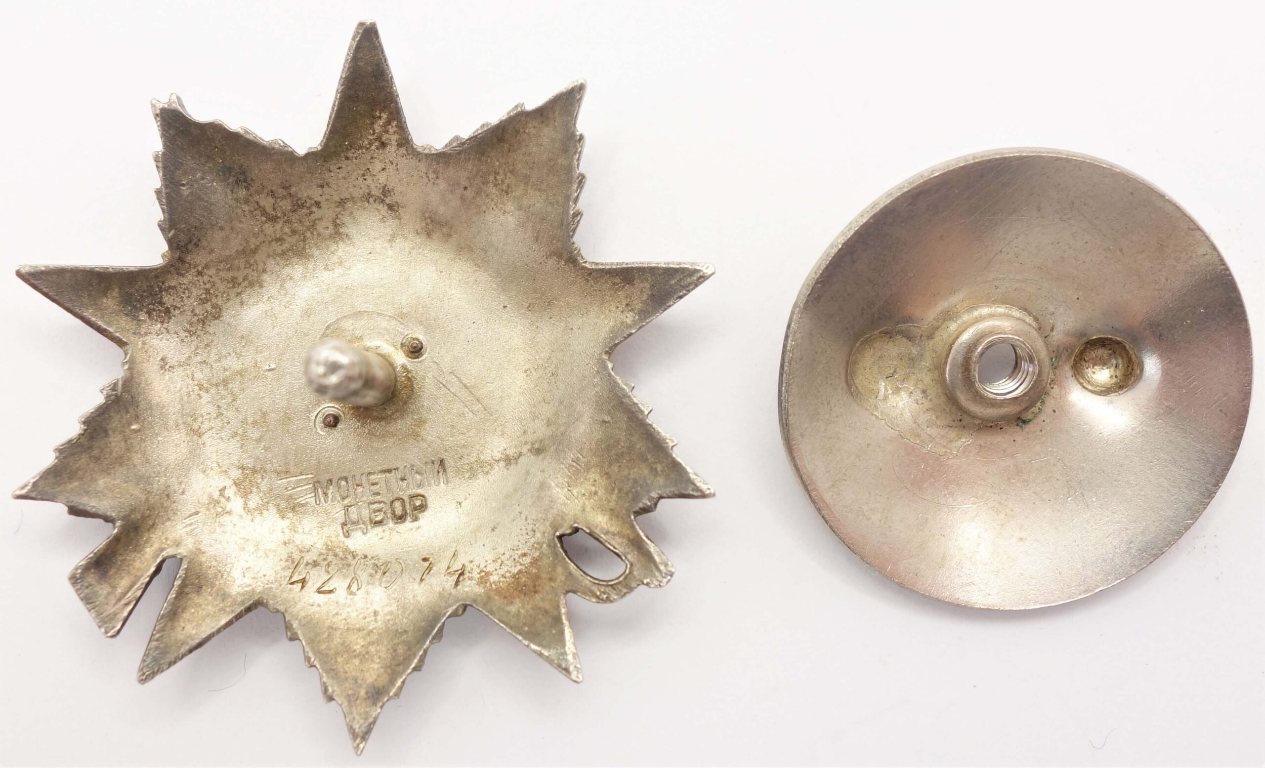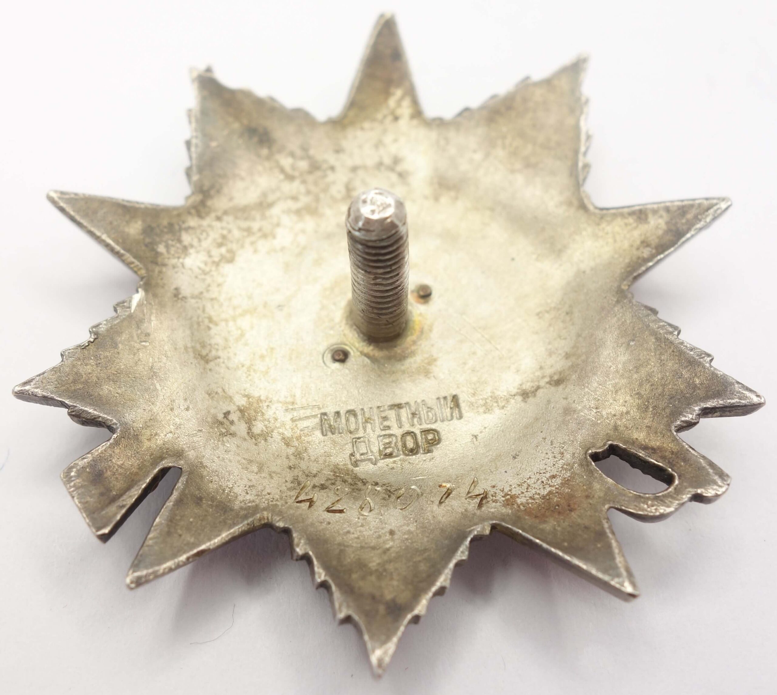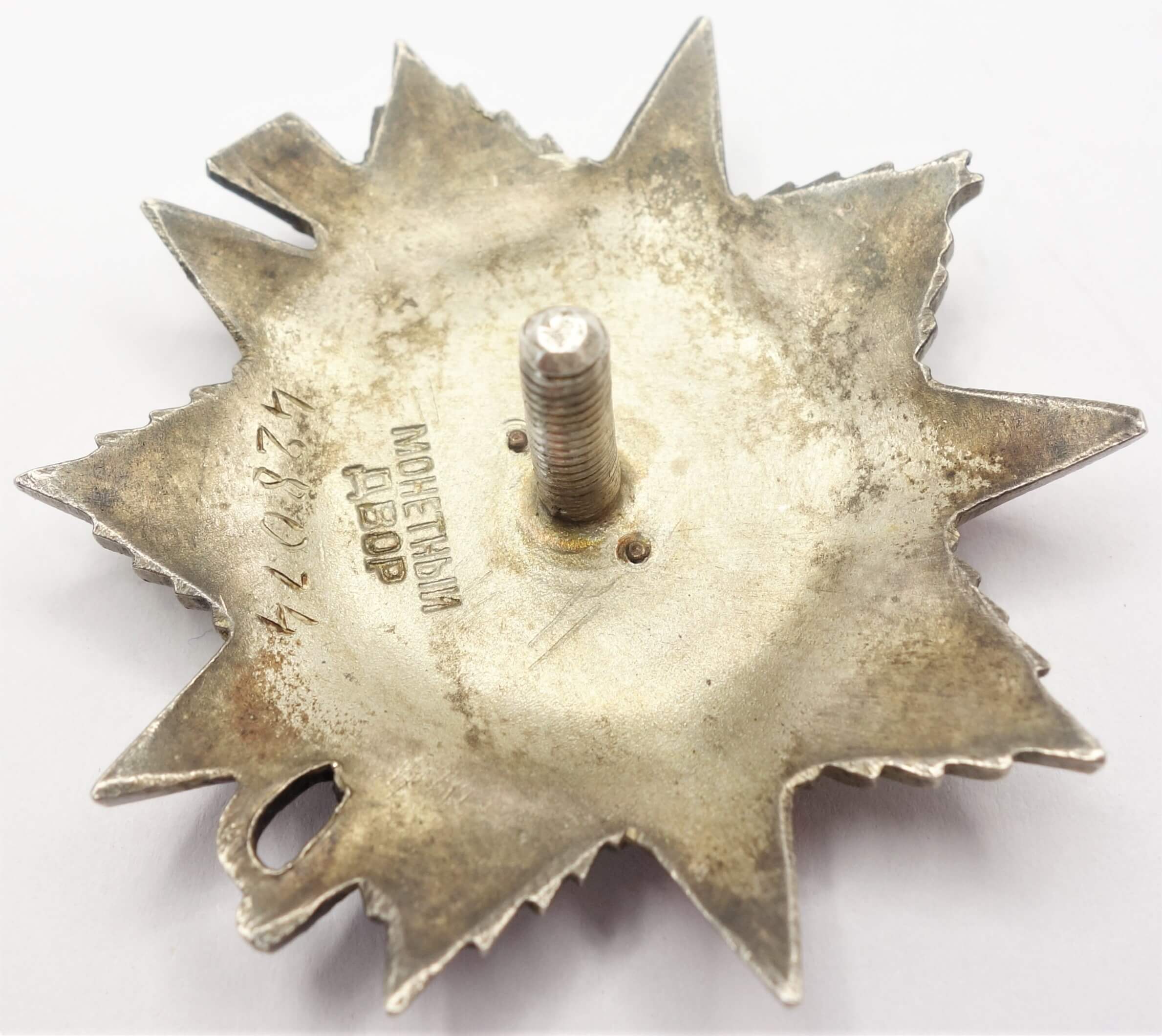 In excellent, well above average condition with its details crisp. The red and white enamels are very well preserved and show no visible dings and scratches. The gold hammer and sickle is original and firmly attached and the order comes with its time period and well fitted screwplate. There have been no repairs and its screw has not been shortened.
