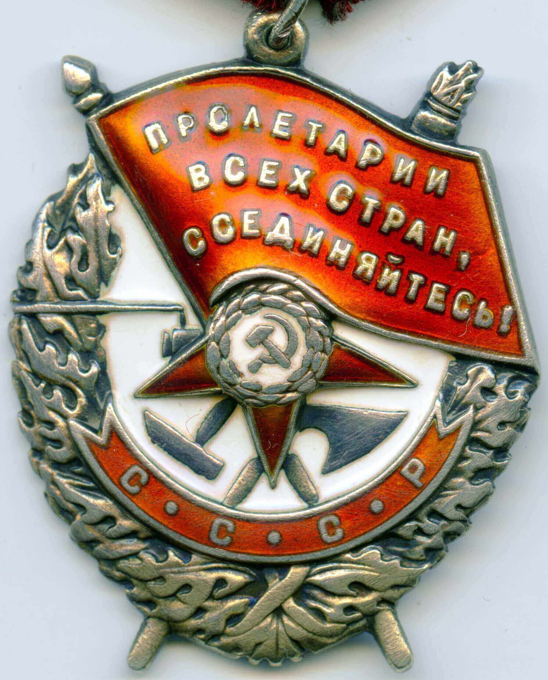 We also included a scan of the citation for his Oder of the Patriotic War 2nd class together with several pictures of Major Tetryatnik. One shows him wearing this Red Banner.
