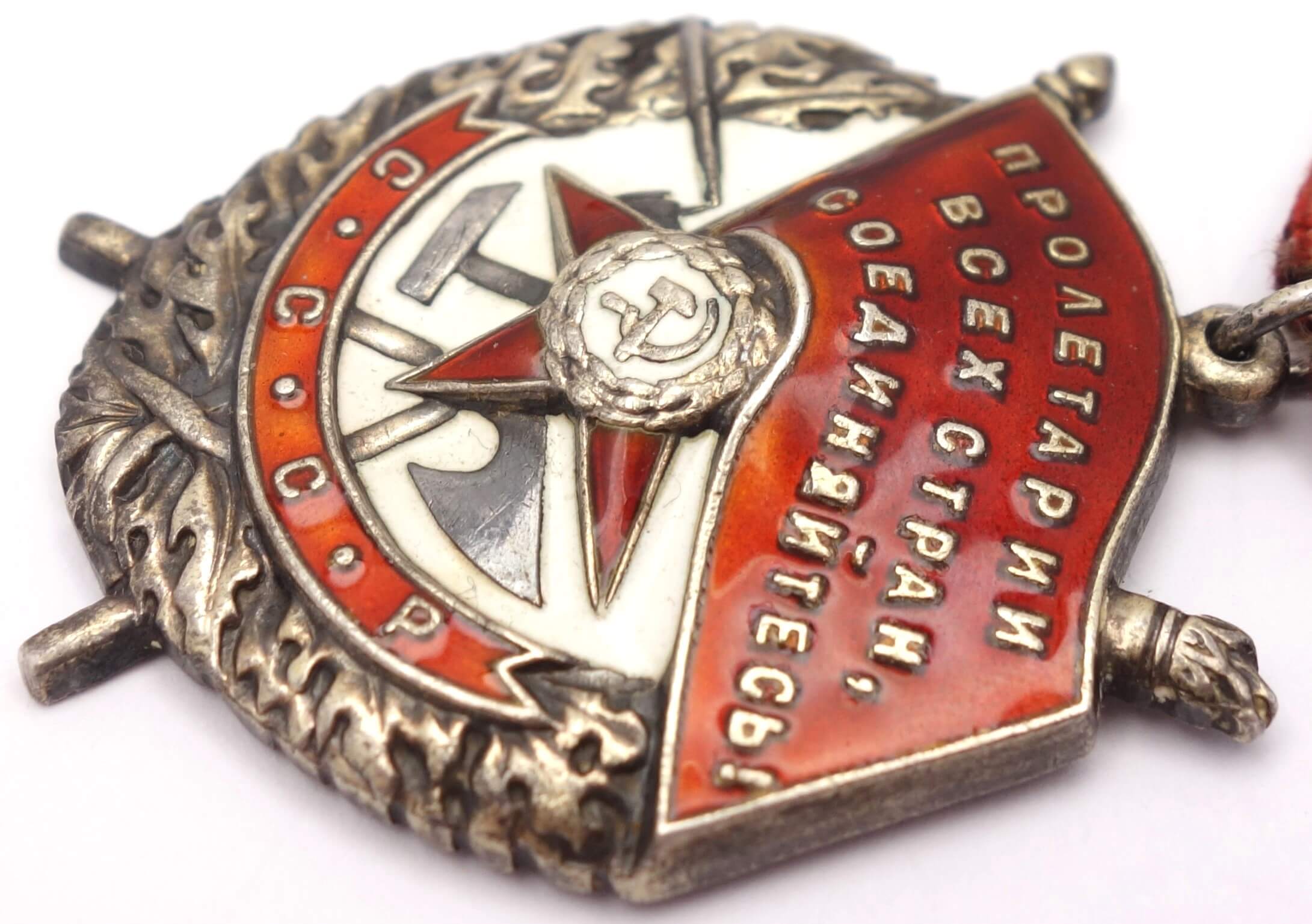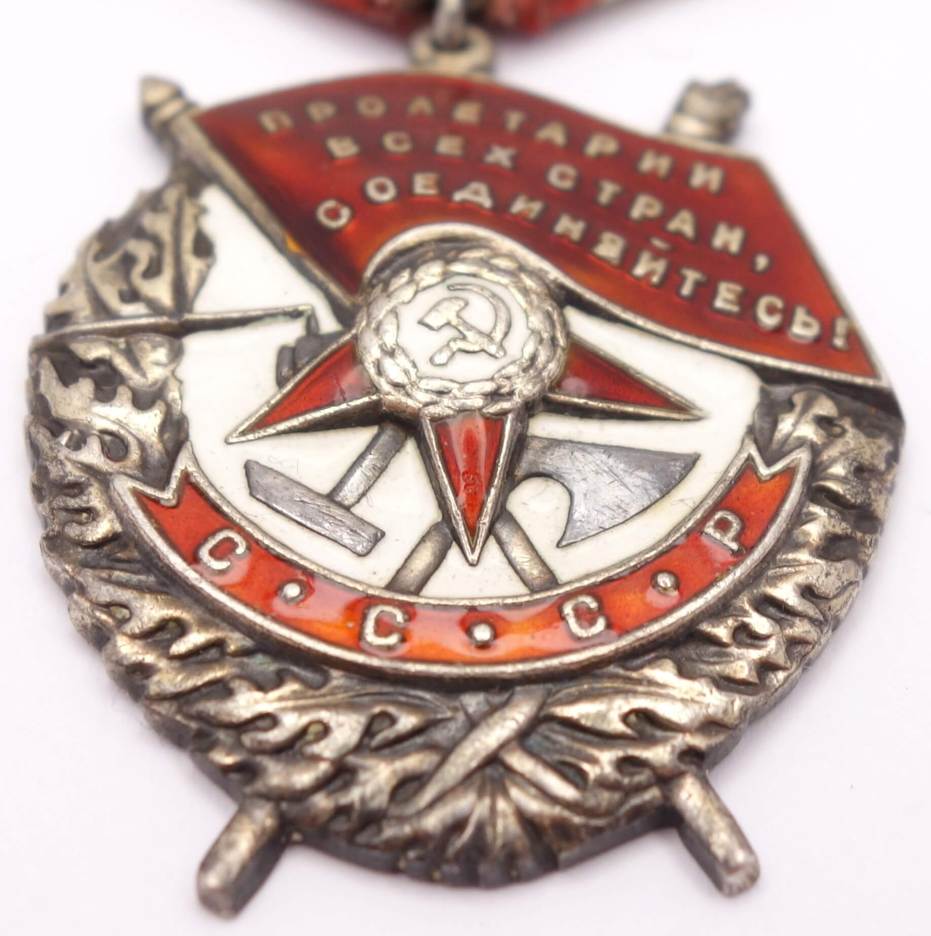 The Order of the Red Banner recognized military deeds. Before the establishment of the Order of Lenin, the order functioned as the highest (and practically the only) military order of the USSR. Practically all well-known Soviet commanders became Cavaliers of the Order. Also awarded to NKVD personnel.