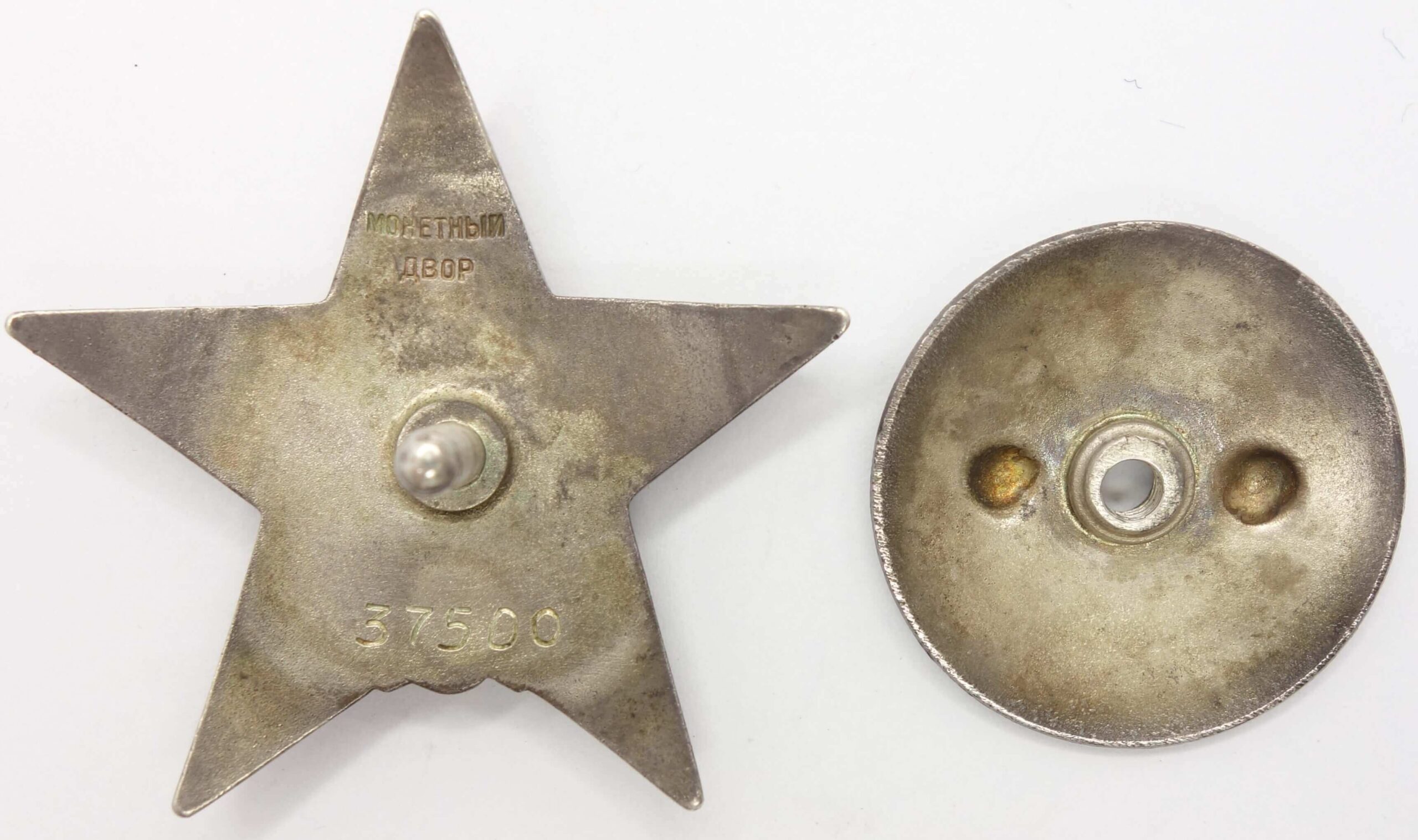 In excellent, well-above-average condition, especially for such an early Red Star. The raised details show light wear and remain largely visible. The enamels are well preserved, with a few small dings and a tiny chip on the 5 o’clock ray, barely noticeable to the naked eye.The reverse is equally nice condition, showing almost no traces of wear. Its screwpost is full length and the order includes the original period silver screwplate.