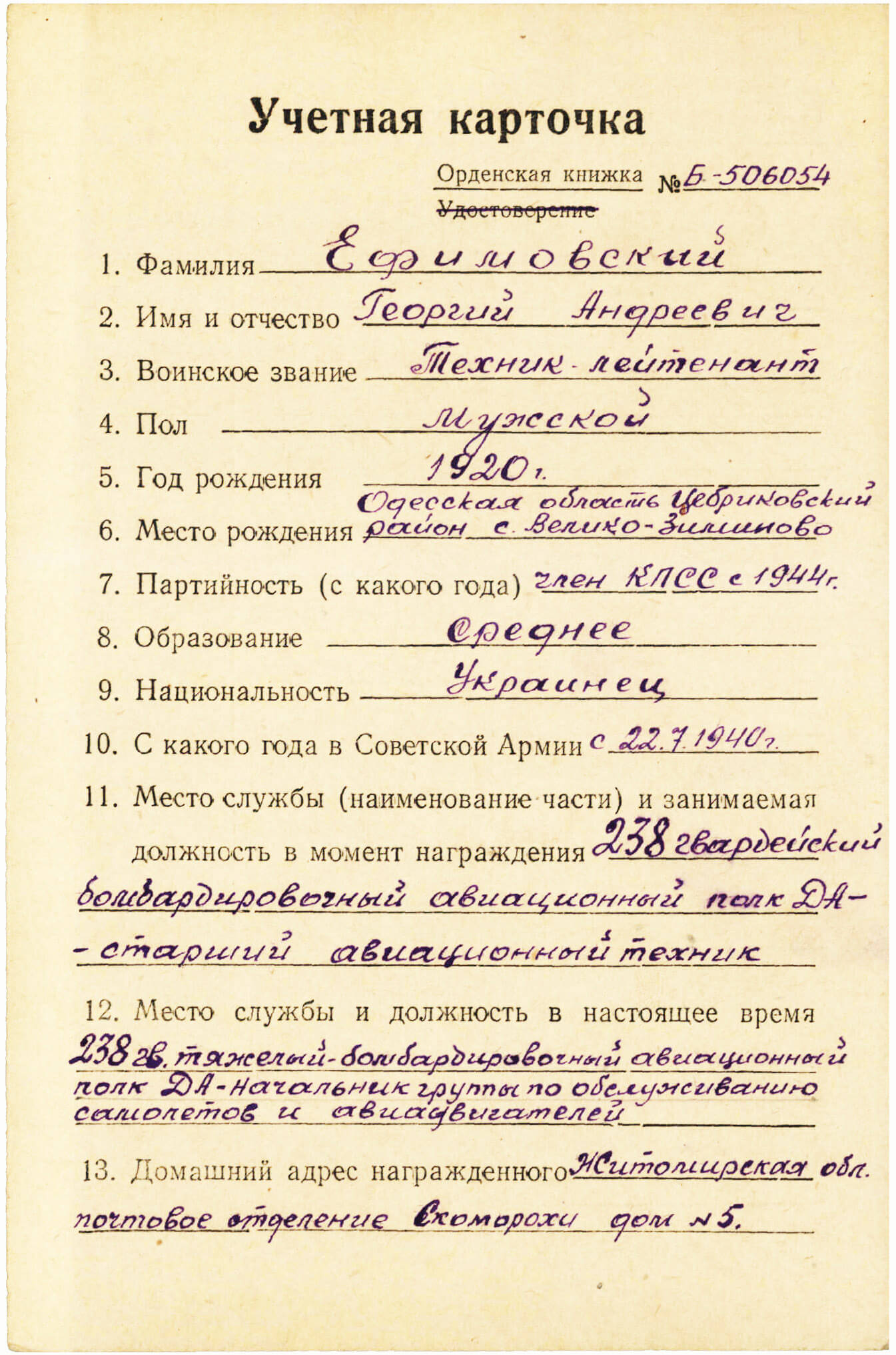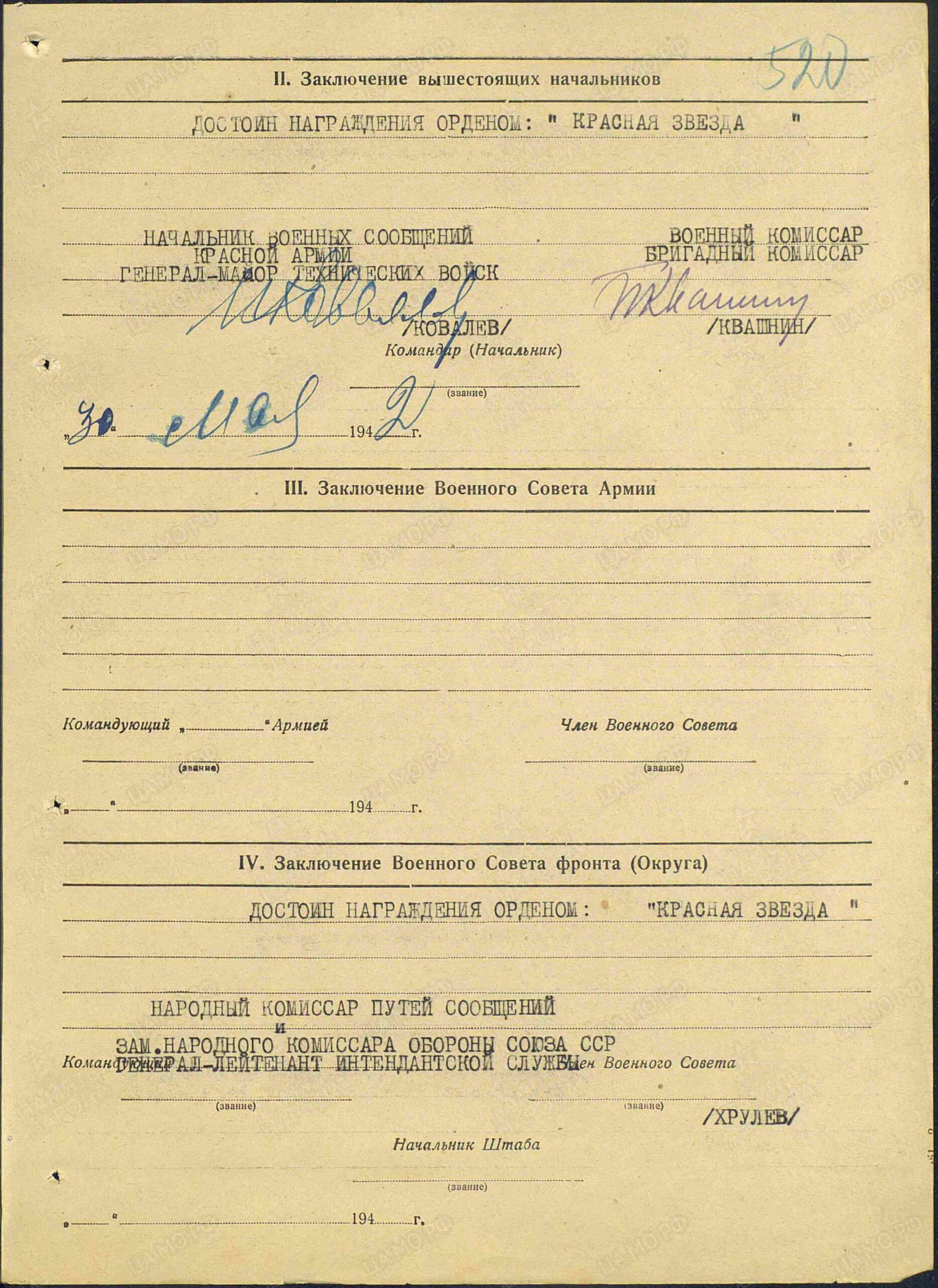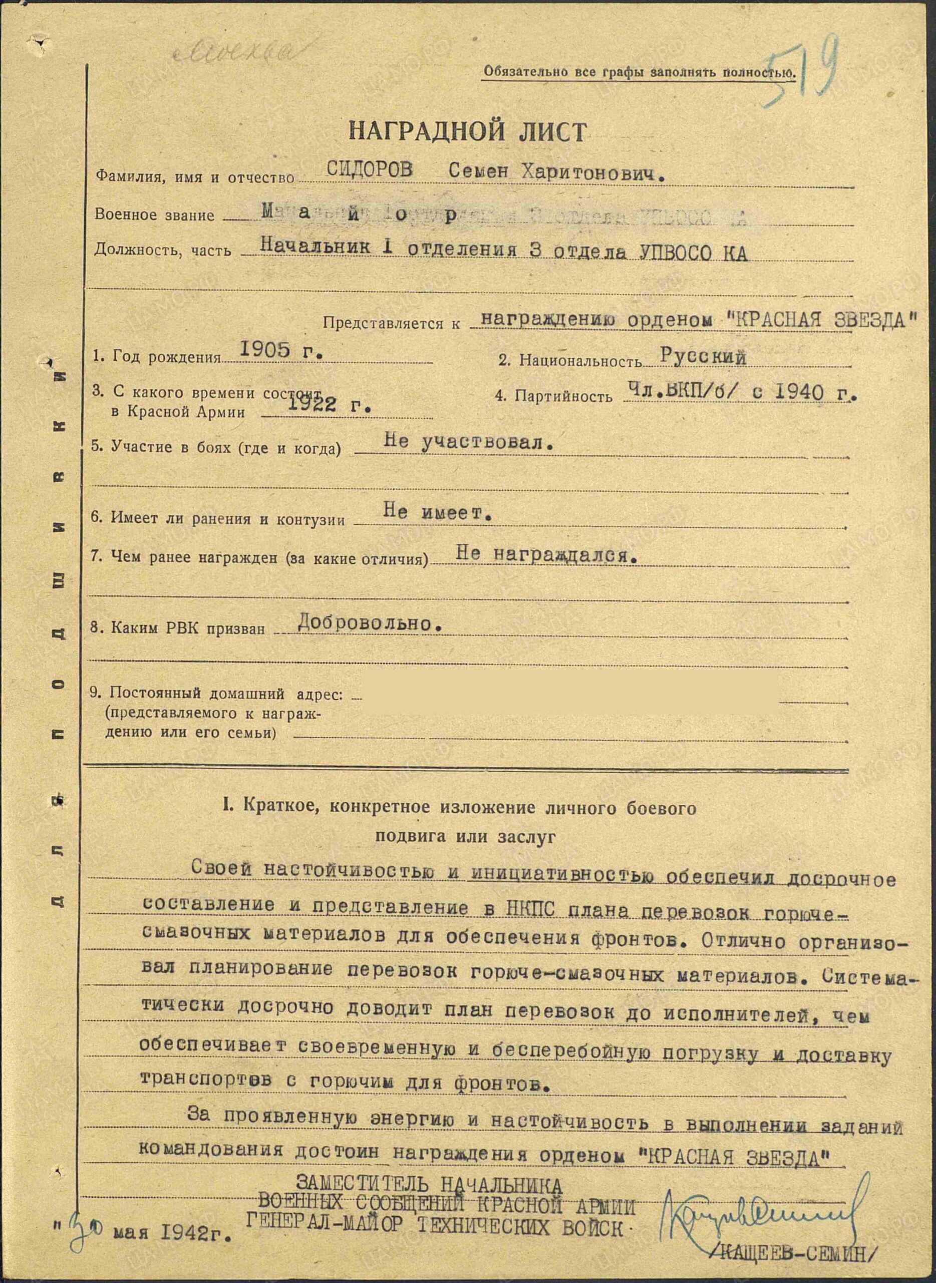 Through his persistence and proactiveness, he ensured that a plan for the transportation of fuels & lubricants for supply of the front was drawn up and presented to the People’s Commissariat of Railways ahead of schedule. He excellently organized the planning of transport movements. He systematically brings the transport movement plan into implementation ahead of schedule, which ensures the timely and uninterrupted loading and delivery of transports with fuel for the front.