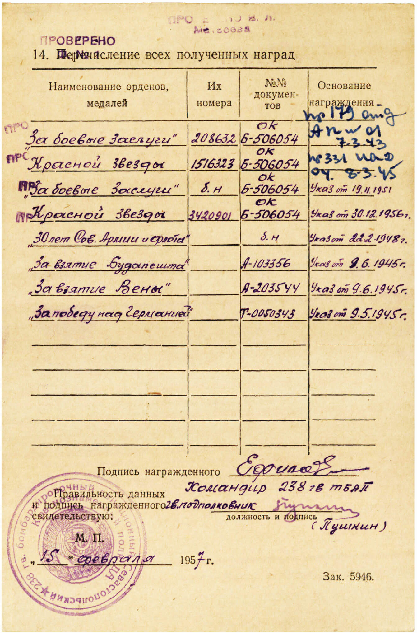 For energy and persistence displayed in fulfilling missions from Command, he deserves awarding of the Order of the Red Star.