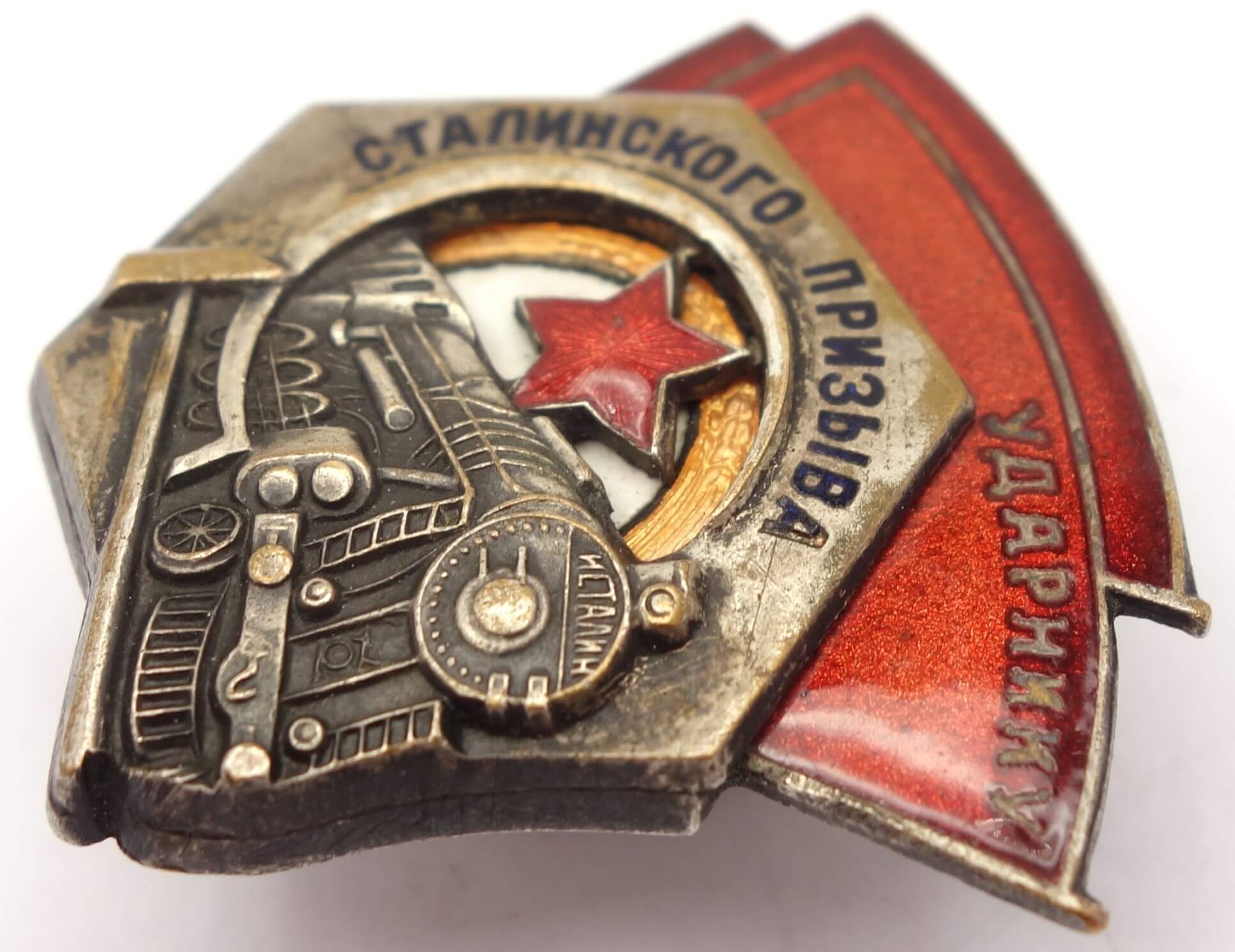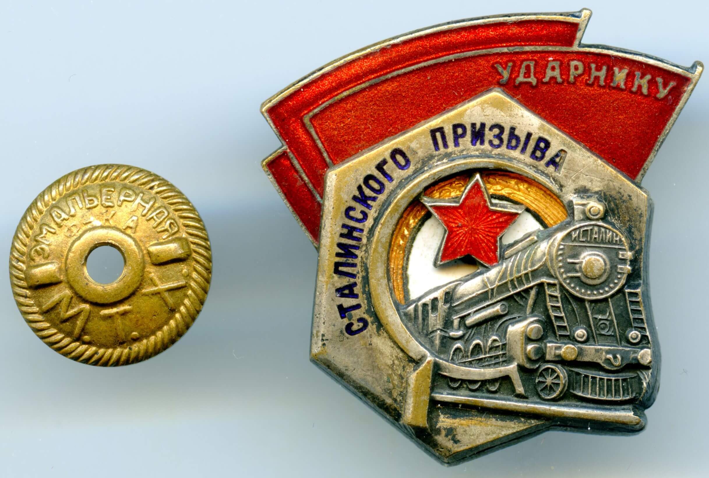 Soviet Shock Worker of Stalin Labor Campaign Badge #64216
