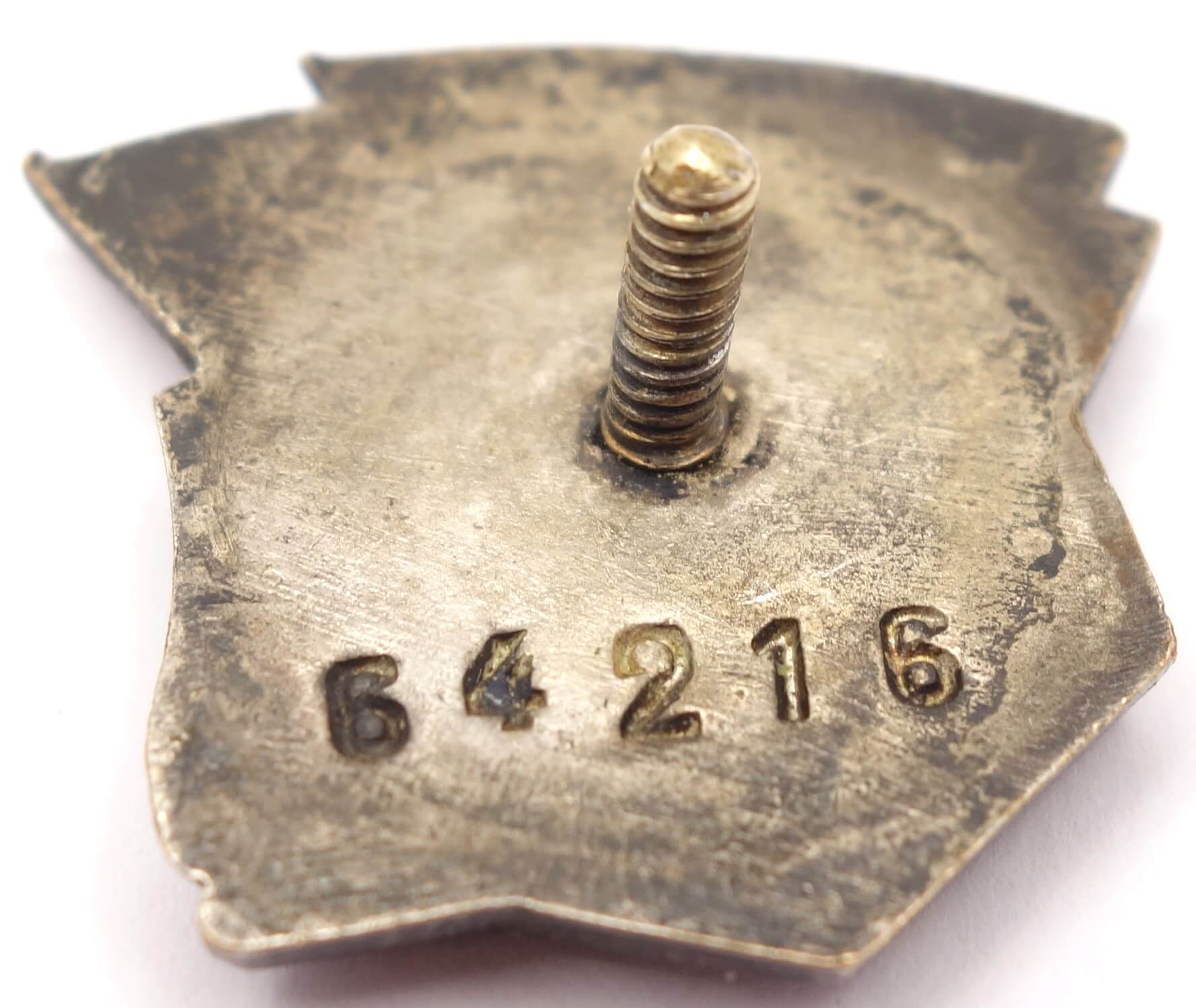 In excellent, well above average condition with beautiful enamels without damage or repairs. The details of the raised areas like the train are pristine and most silver plating is still present. Its screw has not been shortened and the badge comes with a time period screwplate which fits well but is not native to the badge.