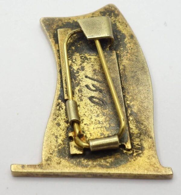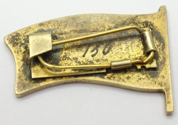 This badge is made of solid silver and enamels. It measures 24.88 mm in height (flagpole), 33.83 mm in width and it weighs 10.5 gram. The reverse shows its raised mint mark MMD and engraved serial number ‘150’.